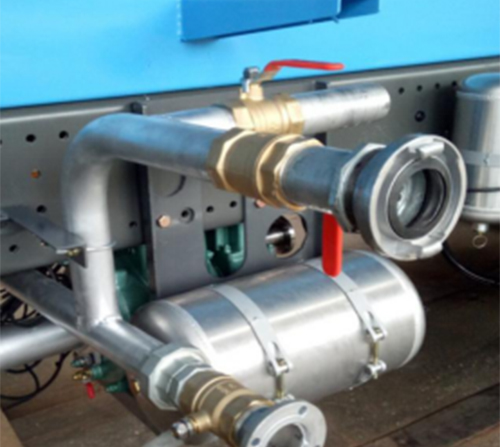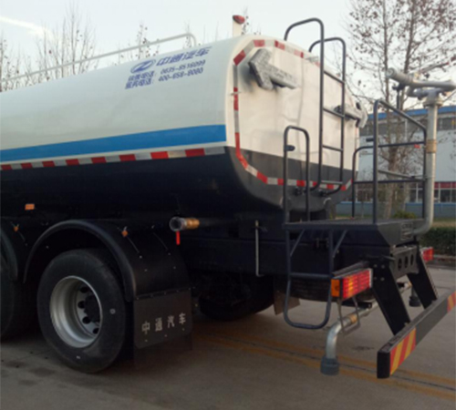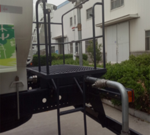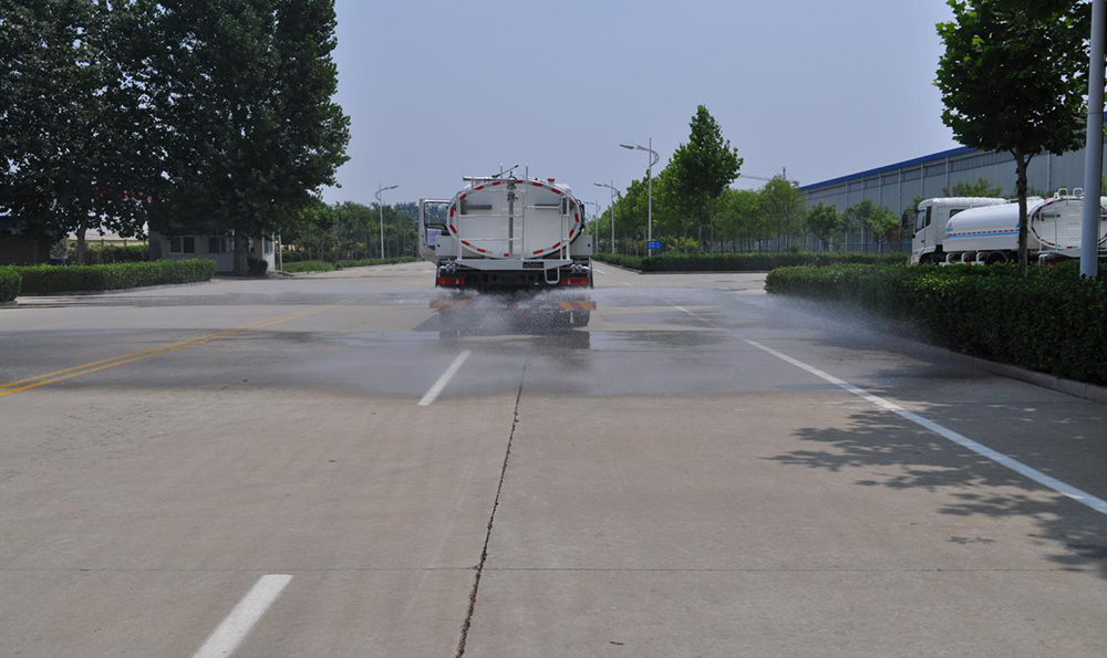 1.洒水车的罐体采用三维造型设计,罐体内部采用溢流管排水,能有效防止因长期溢流而对罐体外观造成损坏。